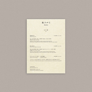 お品書きや三つ折りパンフレットは、みやこの落ち着いた和の空間や雰囲気に合わせたフォントや紙質、色合いなどにこだわって制作いたしました。